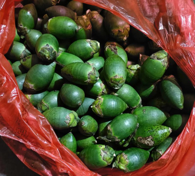 槟榔是用槟榔果制作而成的。槟榔是呈弱酸性的植物,应该在清水中加入适量的碱,使槟榔呈中性,更可以彻底地清洗槟榔果的表面。清洗完的槟榔果需要存放在干燥的环境里比较好。最后给槟榔添加香精,选用香精时应考虑耐挥发的香精,为了防止香气的流失和外观的美观性,可适当涂点胶体。