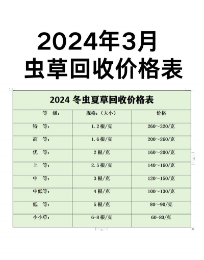 关于2024年冬虫夏草的价格: