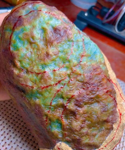 翡翠原石的形成通常需要经历漫长的地质过程,由造山运动产生的翡翠矿石进入地下后,受到地下水、火山气体等流体的长期侵蚀作用,逐渐形成含有翡翠晶体的岩石层。然后,这些岩石层在地壳运动的过程中被抬升至地表附近,暴露在地表的阳光、雨水等自然环境中。在长时间的风化作用下,翡翠原石逐渐露出表面,成为我们所看到的翡翠矿石。