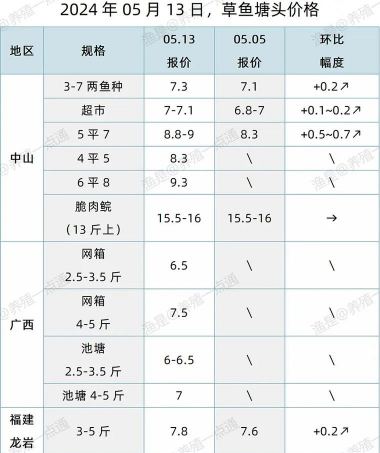 关于草鱼、鲢鱼、鲤鱼和鲶鱼价格: