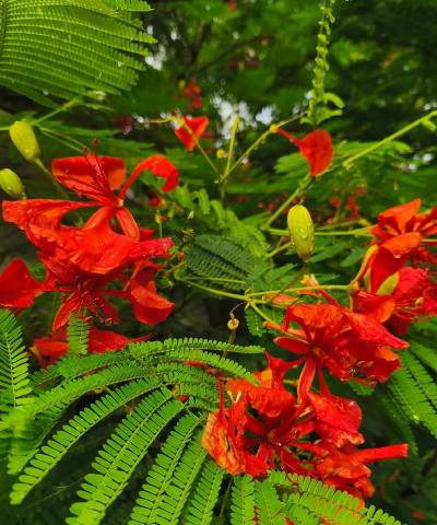 凤凰花根系发达,具有较强的耐旱能力。在干旱条件下,也能维持正常的生长。