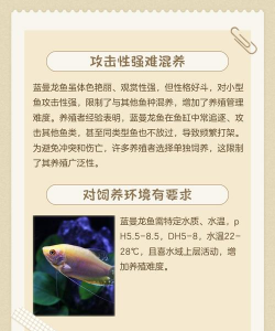 5.繁殖:蓝龙鱼繁殖较难,需要特殊环境和技巧。