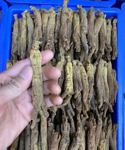 应选参体粗大且长的红参,每枝人参的下端如树枝般分叉,一般分为两歧。歧根应该保留短小,不宜过长,以免影响主根的重量和品质。