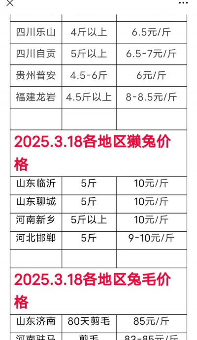 兔肉的价格通常在每斤15-25元人民币左右,不同地区的兔肉价格可能有所不同,例如,在山东省济宁市嘉祥县后腿兔肉批发价格13.5元/斤,江苏省盐城市大丰区生鲜冷冻兔肉批发价格18元/斤,安徽省阜阳市界首市新鲜兔肉批发价格20元/斤,河南省郑州市登封市冷冻兔肉批发价格13.7元/斤,广东省佛山市南海区冷冻兔肉批发价格13元/斤,山东省聊城市茌平区冻冰鲜兔肉批发价格17元/斤,安徽省阜阳市颍州区兔肉批发价格14.5元/斤,江苏省无锡市宜兴市冷冻兔肉批发价格12元/斤,四川省广安市岳池县冷冻兔肉批发价格24元/斤。