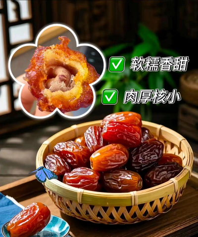 椰枣果实紧实,甜味浓郁,口感香甜;红枣则口感软嫩,甜味适中,咀嚼时带有清香感。