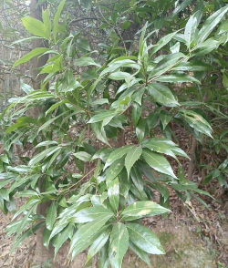 2、是单叶互生,叶片革质,倒卵状椭圆形或长椭圆形,长6-14公分,先端渐尖,基部近圆形,叶边中部以上有疏锯齿,表面深绿色,背面灰白色,有白粉,叶柄长1.5-2.5公分。