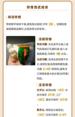 将芋头削皮后切成片或块,放入密封袋中,存放在冰箱的冷冻室内,可以保存至少半年以上。但芋头冷冻后口感会变得柔软,烹饪时需注意火候。