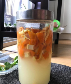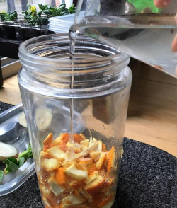 吃剩下的水果和果皮也是制作磷钾肥的好材料。将其与泥土混合后密封保存,放置一个月后便成为腐殖土。在家庭盆栽植物时,可以直接将其作为盆土中的基肥使用。
