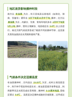 不同品种的油菜对播种时间有不同的要求。早熟品种可适当早播,中晚熟品种可适当晚播。