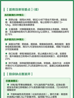 (2)百菌清:百菌清具有较强的渗透性和内吸性,能迅速进入植物体内,干扰病原菌的生理代谢,使其生长发育受阻,从而达到杀菌效果。