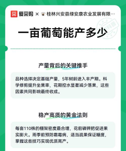 1、品种选择是影响产量的重要因素。不同品种的葡萄在产量和品质方面都有所不同。一些品种的葡萄可能更适合在特定的气候和土壤条件下生长,因此需要选择适合当地环境的品种。