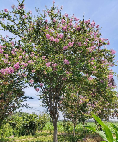 紫薇树作为优秀的观花乔木,在园林绿化中,被广泛用于公园绿化、庭院绿化、道路绿化、街区城市等,在实际应用中可栽植于建筑物前、院落内、池畔、河边、草坪旁及公园中小径两旁均很相宜。也是做盆景的好材料。