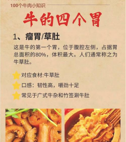 瘤胃:这是牛四个胃中最大的一个,位于腹腔左侧,约占整个胃容积的80%。瘤胃的主要功能是发酵,内部有许多微生物,能够帮助分解纤维素等难以消化的物质。瘤胃的内壁有许多突起,增加了表面积,有助于微生物的附着和消化作用的进行。瘤胃被称为“草肚”或“牛肚”,适合炖煮、凉拌、烹炒等多种烹饪方式。