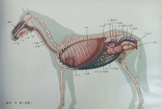 后肠位于前肠之后,是马吃草获取能量的原因。它包括盲肠、大肠和小结肠。正是在后肠中,细菌消化将纤维状植物物质分解为可用于能量的挥发性脂肪酸。盲肠是一个大型发酵桶,可以容纳7至8加仑的食物和水。马的消化道在多个位置弯曲和变窄,这增加了被密集的纤维状植物材料撞击和堵塞的风险。