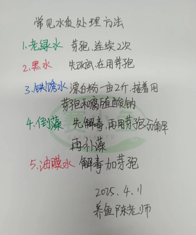 这是肥力过剩导致的“老水”现象,易引发溶氧不足。需立即停止施肥,每亩泼洒200-300毫升EM菌或光合细菌,分解多余有机物;同时开启增氧机(每天2-3小时),增加水体溶氧;若情况严重,可更换1/5-1/4的新水,稀释水体浓度,避免鱼类浮头。