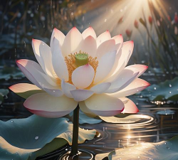 荷花在月光或晨曦下,常被比作“披着轻纱的仙女”“含笑伫立的仙子”或“刚出浴的美人”,突出其超凡脱俗与灵动之美。