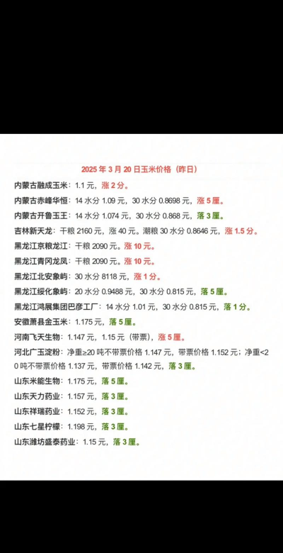 主产区收购价:11月至12月,东北地区标准干粮收购价每斤1.13-1.19元,华北地区为1.25-1.30元,同比均上涨约0.3元/斤。