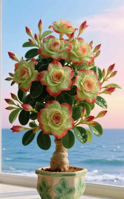 特点:外形似永不凋谢的玫瑰,颜色随光照从绿变粉,象征持久的浪漫。