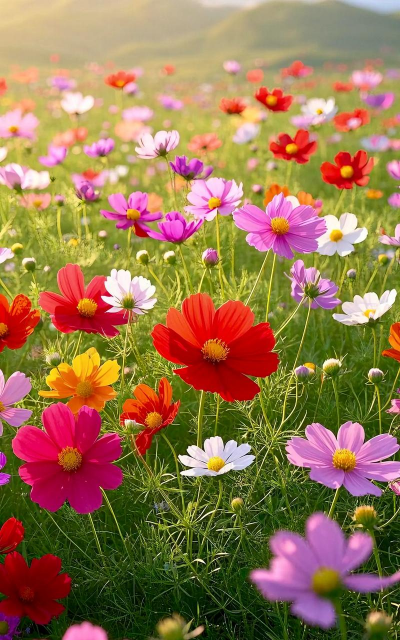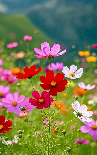 波斯菊:生命力顽强,耐旱耐寒,花色丰富,易于管理,适合山地大面积种植。