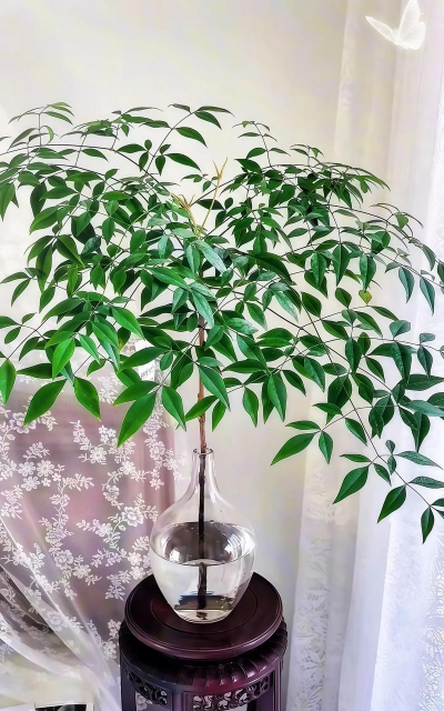 绿萝生命力顽强,遇水即活,叶片蒸腾作用显著,可净化空气中的甲醛、苯等有害气体。适合摆放在客厅或厨房。