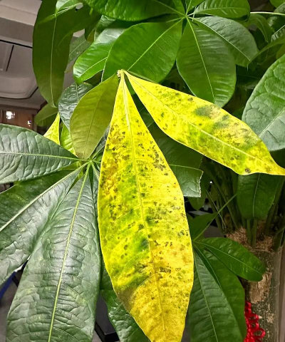 发财树叶子出现白斑的原因多样,主要与环境因素、病虫害及养护不当有关。以下是综合分析及对应的解决方法: