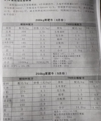从400斤(约200公斤)育肥至1300斤(约650公斤),全程料肉比约为5.8-6:1,需消耗5220-5400斤饲草料。