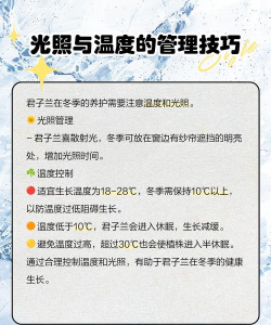 冬季是君子兰生长的关键时期,需特别注意温度、光照、水肥管理及病虫害防治。以下是综合多个权威来源的养护要点: