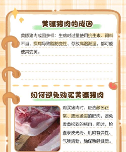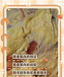 黄膘猪的脂肪组织呈黄色或黄褐色,松软不结实,可能伴有鱼腥味或异常腥味,严重影响猪肉的商品价值。根据成因不同,可分为黄脂肉(可食用)和黄疸肉(不可食用)两类。