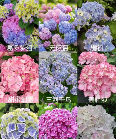 大花绣球品种:无尽夏、胭脂扣、纱织小姐、花手鞠、爆米花、许愿星、魔幻红宝石等。大花绣球花花型丰满,大而美丽,其花色能红能蓝,令人悦目怡神,是常见的盆栽观赏花木。在现代公园和风景区,大花绣球可成片栽植,形成美丽的景观。