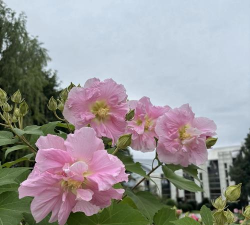 木槿(Hibiscus syriacus):原产中国和印度,花大而艳丽,广泛用于园林观赏。