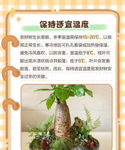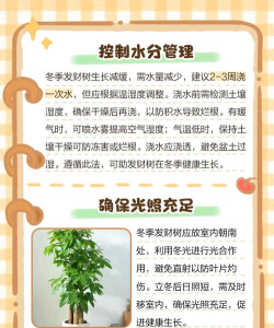 要让发财树安全过冬,需重点关注温度、浇水、光照、通风等关键因素。以下是综合多个权威来源的养护要点: