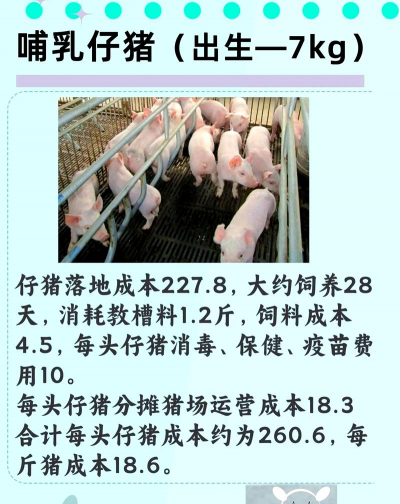 育肥期(30斤至260斤):每头猪消耗饲料700-800斤,成本约1125-1350元/头,100头需11.25万-13.5万元。