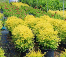 金叶风箱果落叶灌木,生长期叶片金黄色,花白色,果期观赏性强,适合庭院或花坛种植。