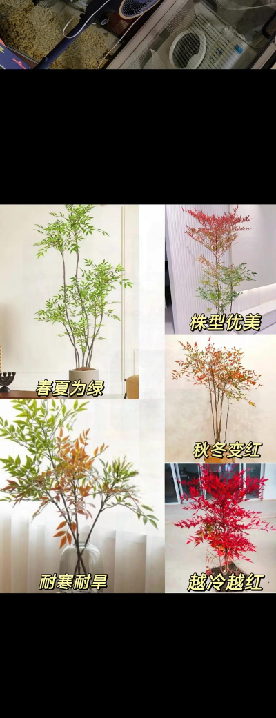 紫色/红色系:紫叶李、紫叶小檗、红枫(全年紫红或红色)。