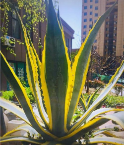 黄边万年兰(Furcraea foetida &x27;Marginata&x27;):叶片边缘有黄色条纹。