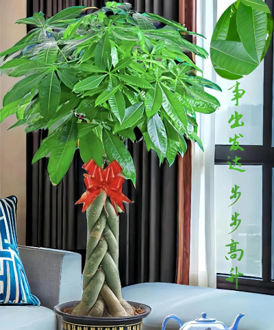 特征:掌状复叶,小叶7-11枚,叶柄常见8枚小叶(谐音“发”),树干呈锤形,适合盆栽,寓意吉祥。