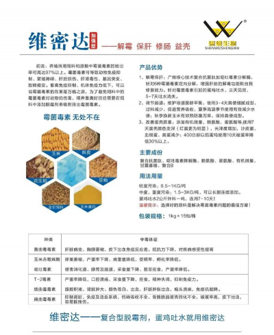复合型脱霉剂(如含益生菌、霉菌毒素降解酶):可同时处理多种毒素,如“霉可脱”或“龙昌龙霉克”。
