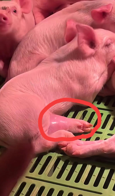 链球菌或副猪感染时,磺胺+萘普生联合治疗,关节肿胀时切开引流。