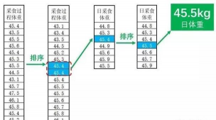 其中,总增重为所有猪的期末体重总和减去期初体重总和,总天数为饲养总天数。