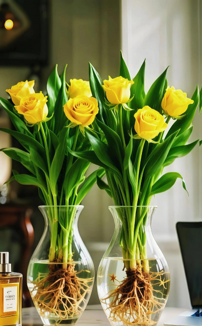 郁金香水培需选择深容器,种球消毒后加水至底部,置于阴凉处生根,开花时花色艳丽。
