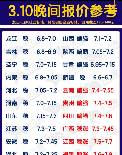 疫病风险提示:当前病毒高发期,需加强消毒措施,如使用过硫酸氢钾等消毒剂防控非洲猪瘟等疾病。如需更详细的实时报价或特定品种(如土猪、仔猪)价格,可参考当地交易平台或联系养殖场直接询价。