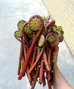 牛毛广(分株紫萁)嫩茎覆盖棕色丝状物,形似牛毛,多见于北方溪流旁,需焯水后食用,可炖肉或凉拌。
