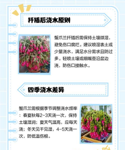蟹爪兰扦插苗的浇水核心是“宁干勿湿”,通过观察土壤湿度和插穗状态灵活调整。初期以潮土促根,后期逐步过渡到常规养护,结合通风与光照管理,可显著提高成活率。