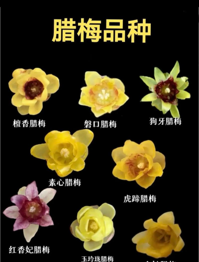 磬口蜡梅:花大且半开半合,形似磬口,香味浓郁,为名贵品种。