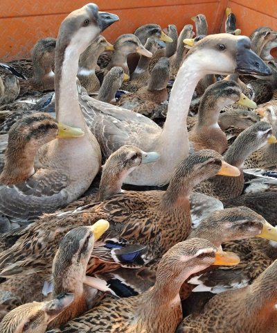 橘园鸡鹅共养模式在橘园养殖场景下,每亩放养50-60只鸡,并按 50-60:1 的比例搭配鹅,即每50-60只鸡配1只鹅。按此计算,1000只鸡约需 16-20只鹅。