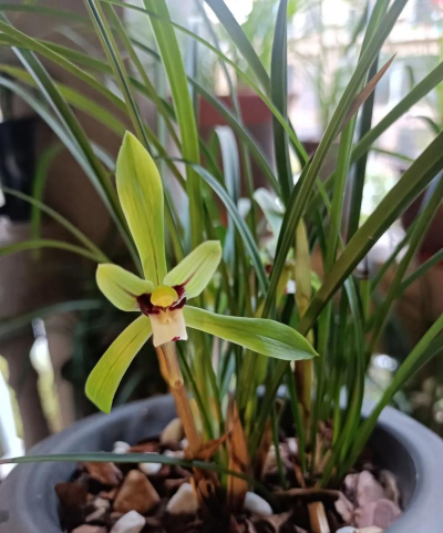 花期与春兰相近,花色紫斑,香气清幽