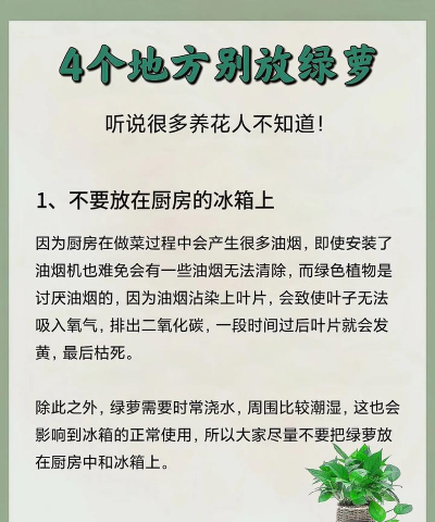 长时间不在家时养护绿萝需重点关注光照、浇水、温度和病虫害管理,具体方法如下: