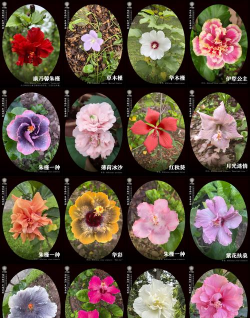 国内用于观赏栽培的木槿品种约有70余种,按花型可分为单瓣、半重瓣和重瓣三类,每类又可细分不同花型。