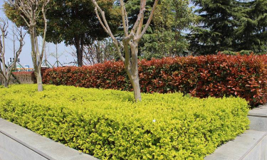 金叶女贞:金黄色叶片,色彩明快,耐修剪,适合与绿色植物搭配形成色块。