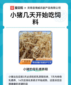 小猪开始吃饲料的时间及喂养频率因生长阶段不同而有所差异,具体如下: